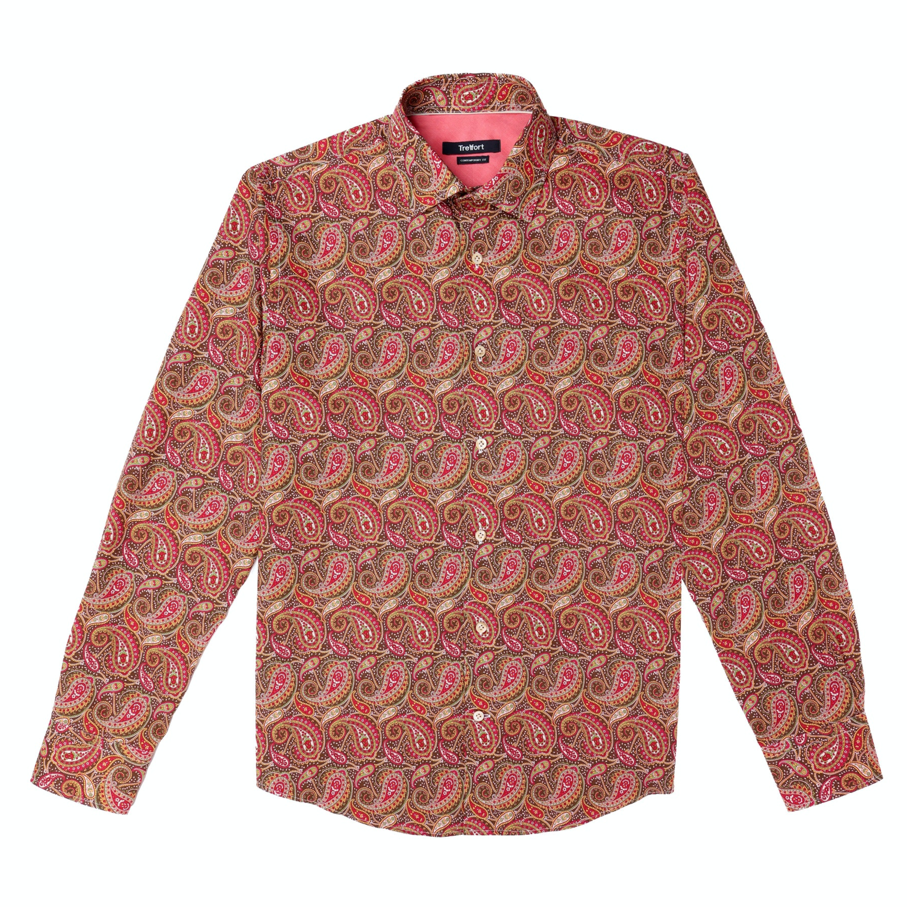 The Treffort Men's Ellington MULTICOLOR PRINT long sleeve button down dress shirt is ideal for special occasions, weddings, and business meetings. Made from 100% premium luxury cotton with meticulous craftsmanship, the Ellingtonshirt is vintage yet modern, bold and confident.